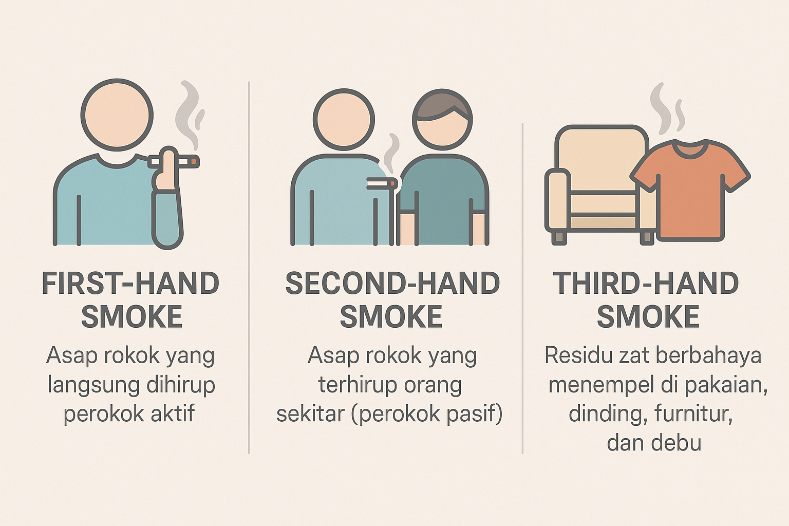 Mungkin banyak orang baru pertama kali mendengar istilah ini. Third-hand smoke adalah sisa zat berbahaya dari asap rokok yang menempel pada debu, pakaian, rambut, kulit, dinding, atau perabotan, bahkan setelah rokok sudah lama padam.